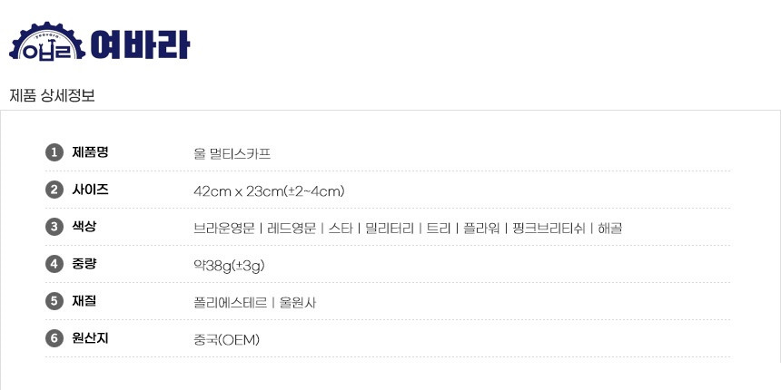 여바라 울넥워머 스카프 목토시 겨울용 해어밴드 손목밴드 머리끈